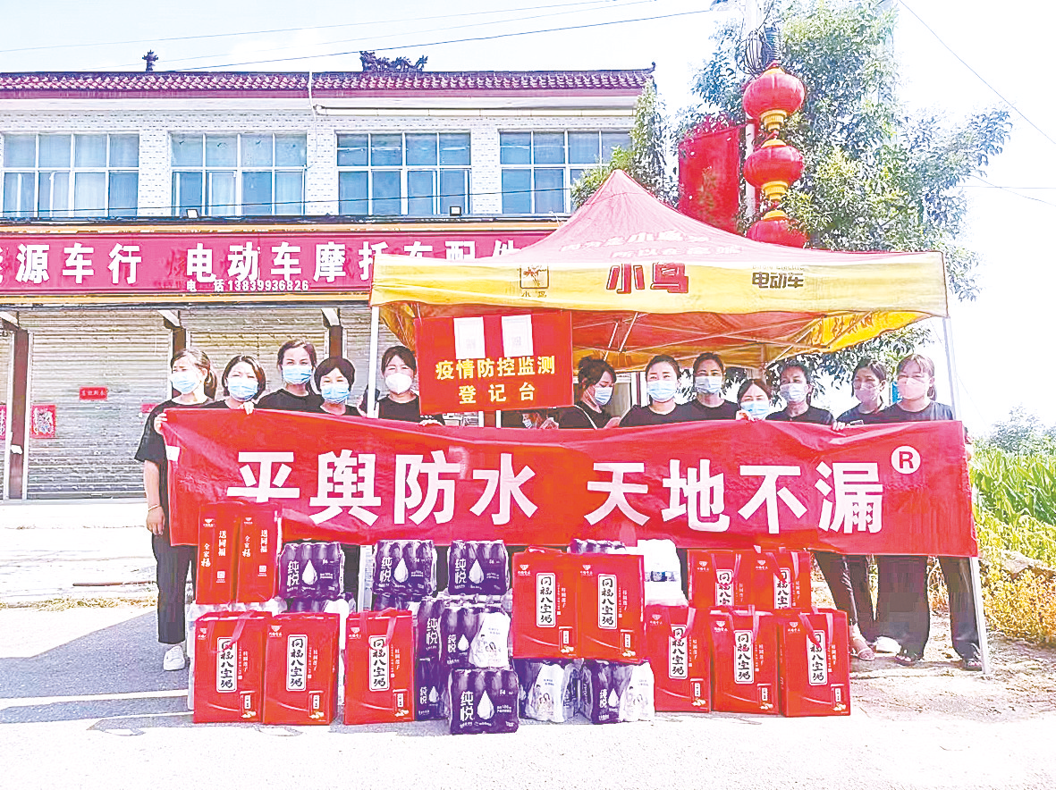 近日,天地不漏建筑修缮技术有限公司(简称天地不漏)相关负责人来到平舆县东和店镇防疫卡点,慰问坚守在防疫一线的工作人员,并捐赠了矿泉水、八宝粥等爱心物资,用实际行动诠释对疫情防控工作人员的关心与支持,彰显企业的社会责任与担当。