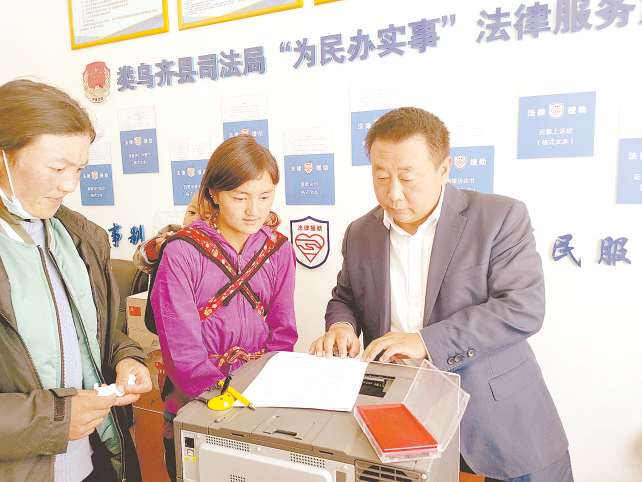 何银富为藏区群众提供法律服务。 (资料图片)