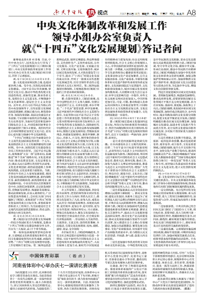 中央文化体制改革和发展工作领导小组办公室负责人就《“十四五”文化发展规划》答记者问