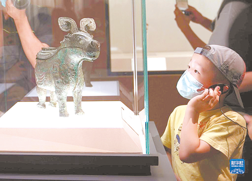 2022年7月30日,小观众在上海博物馆举行的“宅兹中国——河南夏商周三代文明展”上参观。 新华社记者 任珑/摄