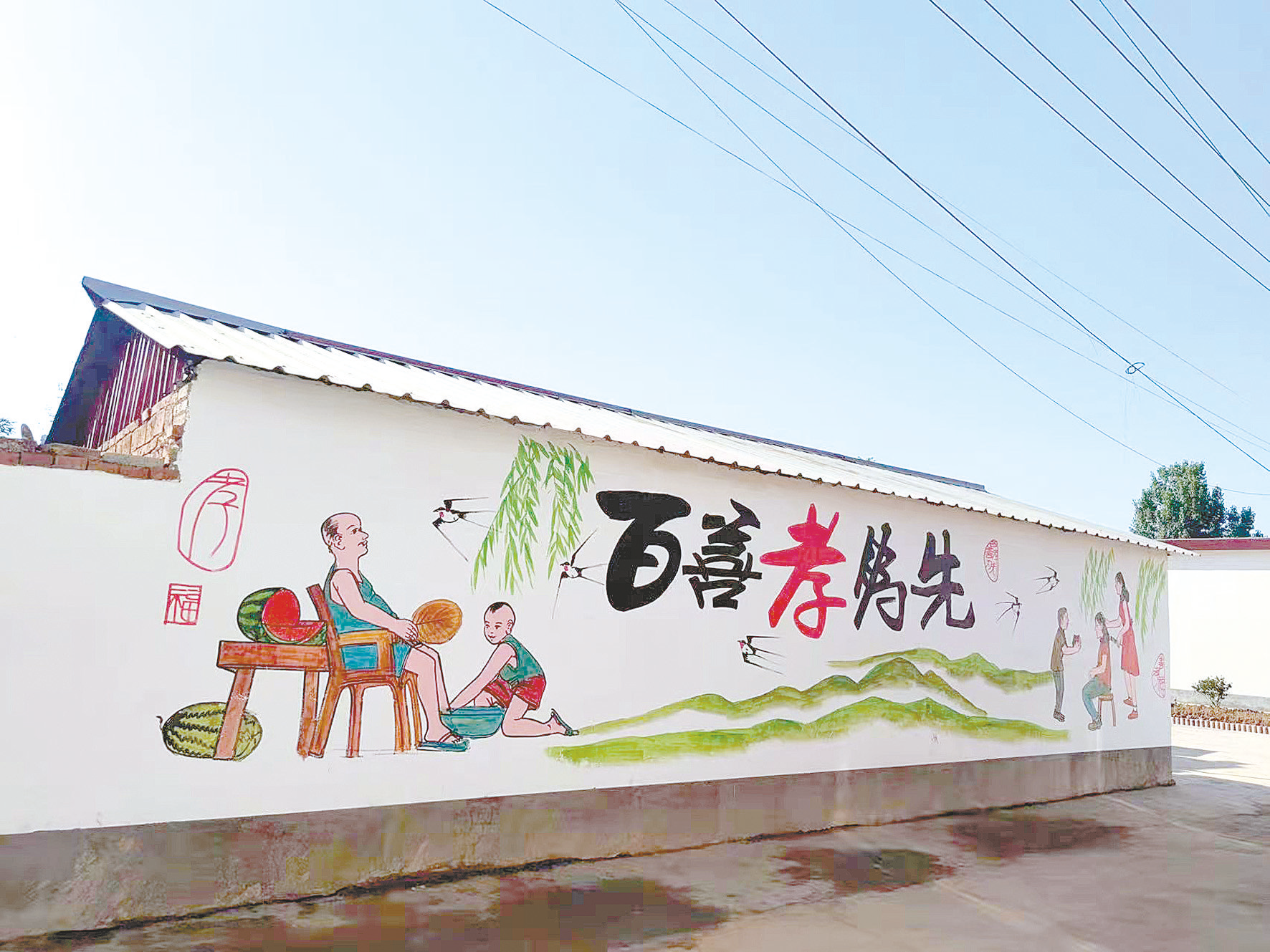 本报讯(文/图 全媒体记者王晓晶 通讯员 郭赟)近日,记者在确山县瓦岗镇看到,村村落落、大街小巷不仅有整洁的村容、文明的村风和优美的环境,还有一面面图文并茂、通俗易懂的文化墙(如图)。这些文化墙寓教于乐,已成为美丽乡村建设中一道亮丽的风景线,更成为传播乡村文化的新窗口、教育群众的新阵地。