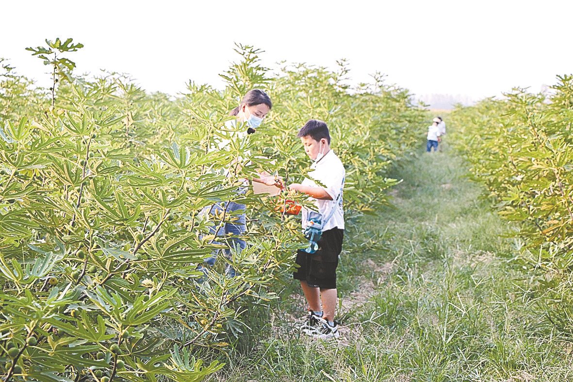 下午5时,傍晚的阳光依旧炽热,但丝毫不影响小记者们的热情。在强调每个人都要遵守活动纪律和注意安全后,小记者们提起准备好的采摘篮,一路欢歌笑语地跑向采摘园,开始了采摘体验。他们有的边吃边摘,有的左挑右挑,有的竟“研究”起了无花果。
