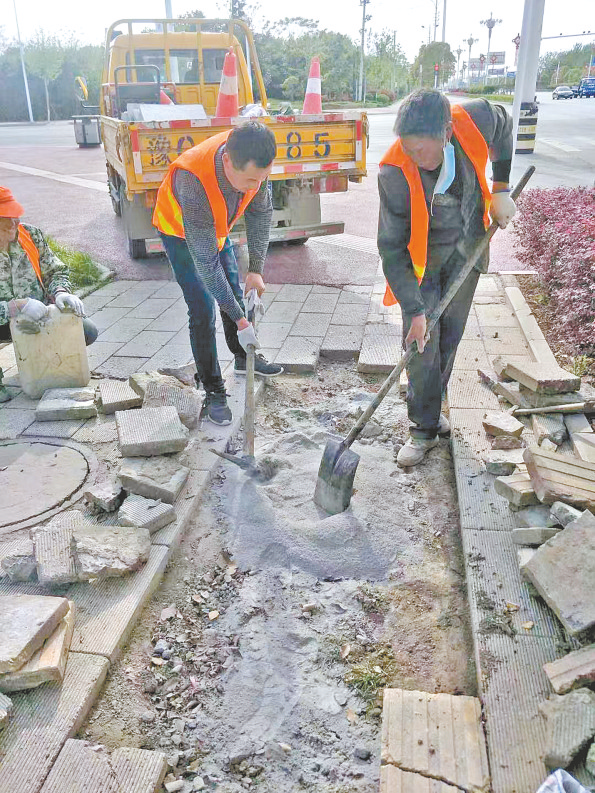 “近段时间以来,市政设施巡查人员发现中心城区部分人行道地砖出现松动、破损现象,影响市民的出行安全,于是我们组织开展了这次集中修补行动。”该中心有关负责人说。