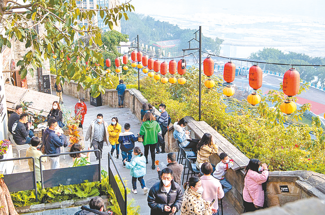 12月24日,游客在位于重庆解放碑商圈的著名景点山城巷游览。