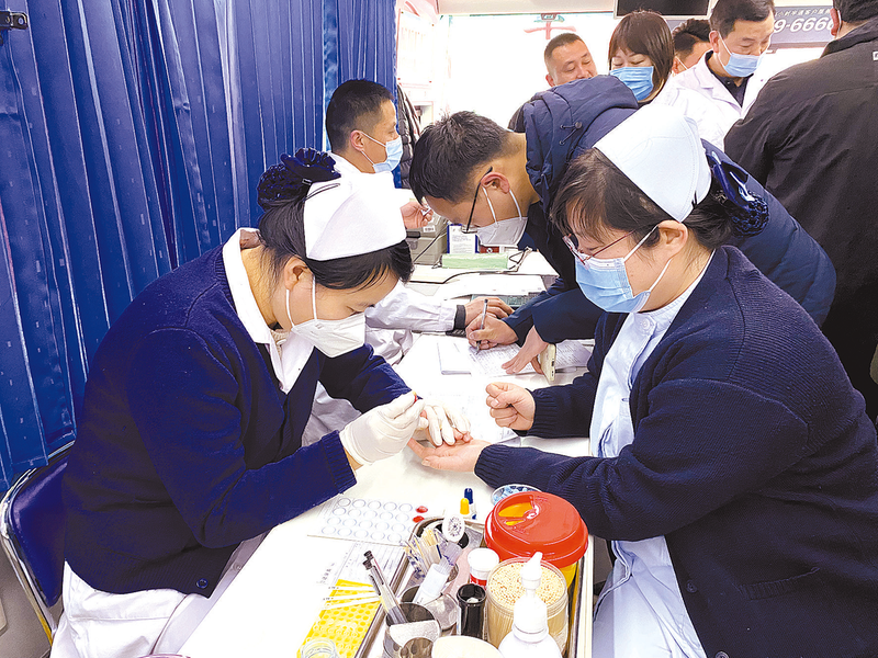 近日,在确山县人民医院院内,该院的医生和护士排队等候在献血车前,有条不紊地等着血站的工作人员喊自己的名字。一名年轻护士告诉记者,她刚上班,这是第一次献血,能为社会做点力所能及的事情,感觉很开心,因为平常工作忙,也想献血,但一直没机会。此次该院共献血31300毫升,参与人数81人。(全媒体记者 杨丽)