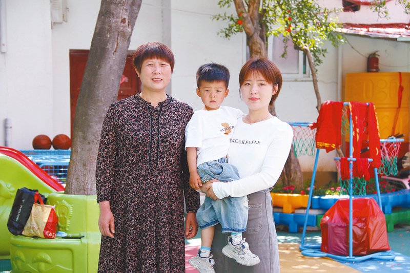 张冰妻子(左)、孙子(中)和儿媳(右)的合影。 文/图 全媒体记者 许伟