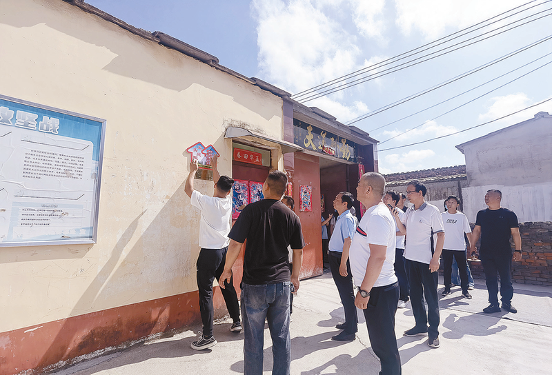 本报讯(文/图 全媒体记者 倪迎娟 通讯员 严令)5月18日,刘阁街道对评选出的第八批(46户)“五美庭院”户进行集中入户挂牌活动。