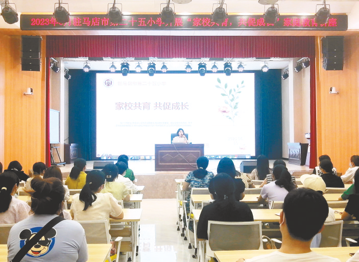 本报讯(文/图 通讯员肖亚丹)6月10日上午,在驻马店市第二十五小学校德育处的协助安排下,一年级组围绕一年级孩子的习惯养成这一话题,组织开展了“家校共育 共促成长”的家庭教育知识讲座(如图)。