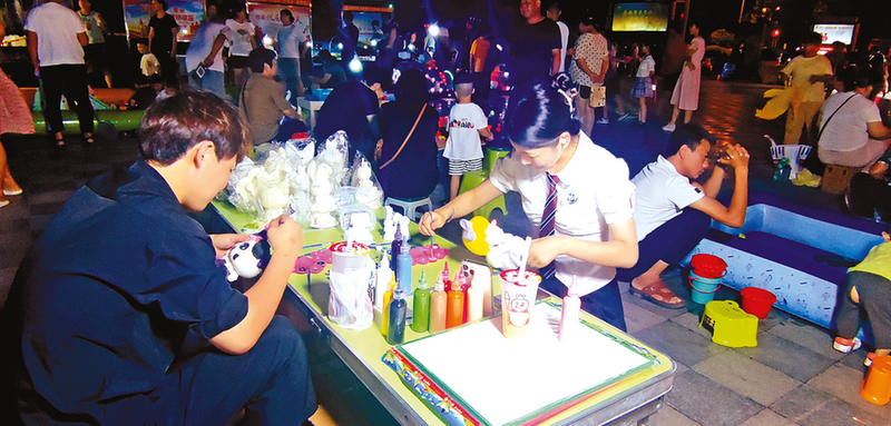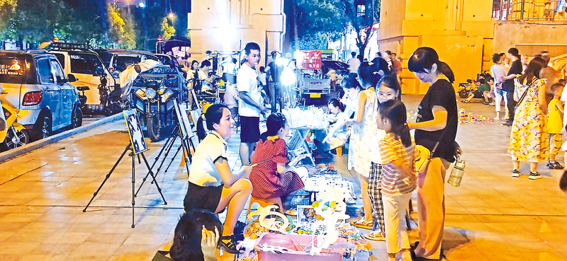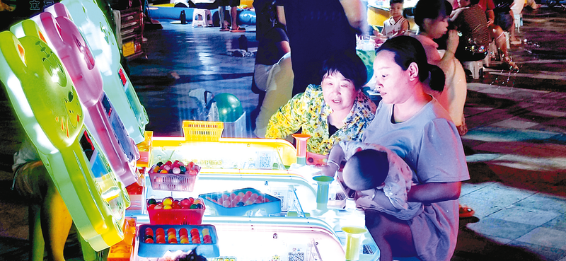 夏日的夜晚,很多市民携家带口到广场和小游园纳凉游玩。一些商家纷纷抓住这一机遇,推出各种儿童游乐项目,吸引了很多家长和孩子。