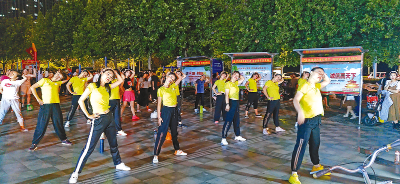 “你是我的小呀小苹果,就像天边最美的云朵……”轻松愉悦的歌声飘过耳际。晚饭后散步经过驻马店世纪广场,很多人都会被这里热闹的场景所吸引。此时的广场人头攒动,俨然成了一个欢乐的海洋——跳舞的、散步的、玩耍的、聊天的……好不热闹,霓虹灯映衬着的是一张张笑脸。