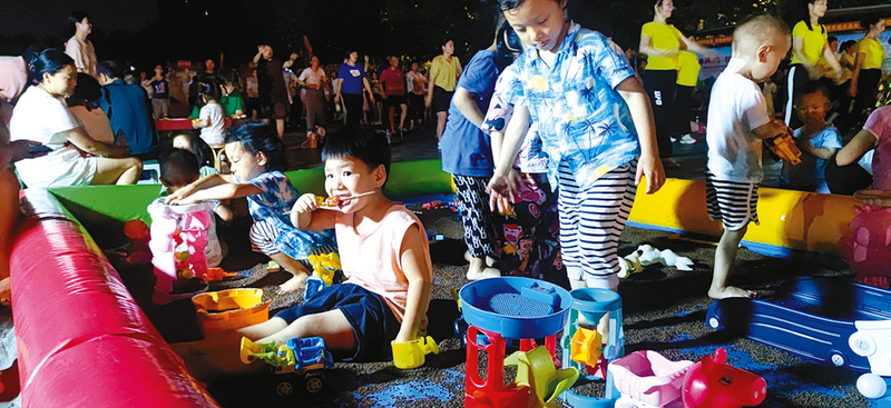 “炎热的夏天,一整天都待在空调房里面,只有到了晚上才出来透透气。”陈女士告诉记者,离家不远的民生小游园成为她晚饭后带孩子休闲的好地方。这里很热闹,不但孩子们玩的游乐项目五花八门,而且她也能跟着大家一起跳操健身。