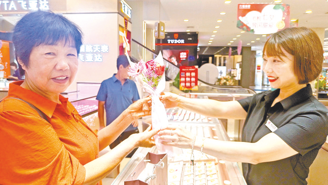 本报讯(文/图 全媒体记者 王永良)8月22日是七夕节。“浪漫经济”快速升温,黄金消费迎来小高峰。众多实体店推出优惠活动,各黄金珠宝品牌也推出七夕节促销活动,优惠力度较平日更大。