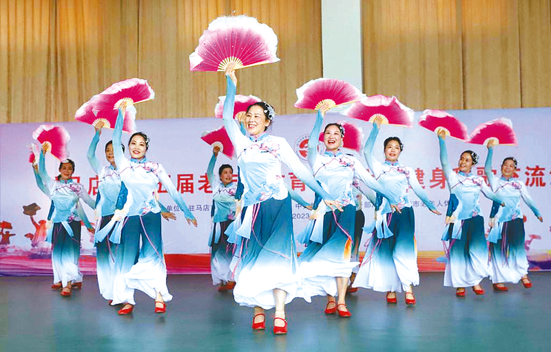本报讯(文/图 全媒体记者刘金霞)暑去秋来气候宜人,老年体育再掀热潮。9月8日、9日,驻马店市第五届老年人体育健身大会健身秧歌交流活动在市老年人体育中心举行。8个县区代表队的112名健身秧歌爱好者参加规定套路和自编套路的交流展示。