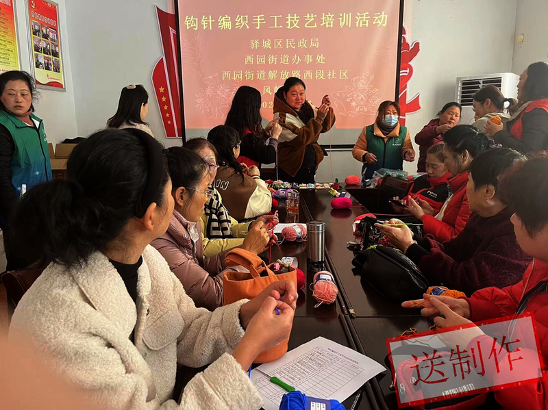 11月24日上午,驿城区民政局、驿城区西园街道办事处、驿城区西园街道解放路西段社区、风帆社工服务中心联合举办钩针编织手工技艺培训活动。