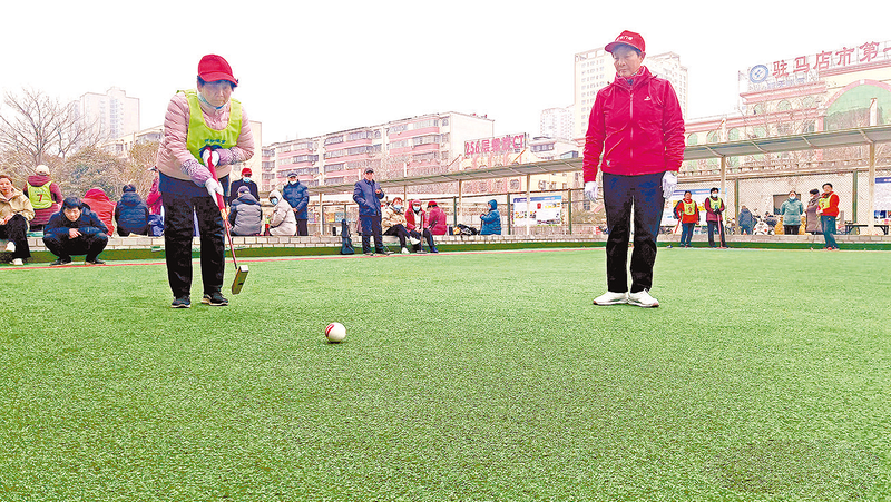3月6日下午,由驻马店市妇女联合会、驻马店市老年人体育协会主办,驻马店市老年人体育协会门球专委会承办的庆“三八”女子门球交流活动在驻马店市区靖宇广场草坪门球场开赛。