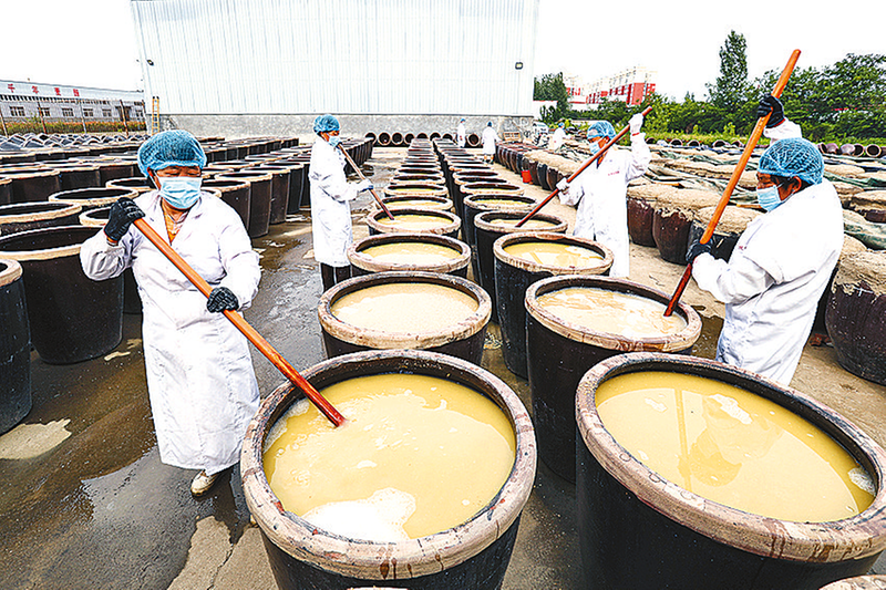 “我们今年酿制食醋3000缸,约500吨。”该公司负责人刘鑫说。今年,他们从7月4日开始酿醋,采用传统手工工艺,延续20多天,再过几天就制作完毕。每年初伏时装缸封坛是传统,经过约140天的日晒夜露,到大雪节气起醋。