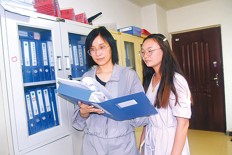 李莉莉(左一)和同事在整理资料 文/图 全媒体记者 张新理