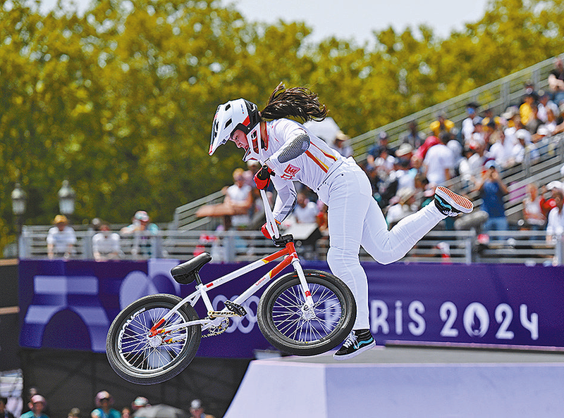 中国选手邓雅文在巴黎奥运会自由式小轮车女子公 园赛决赛中获得冠军(2024年7月31日摄)。 新华社记者 胡虎虎/摄