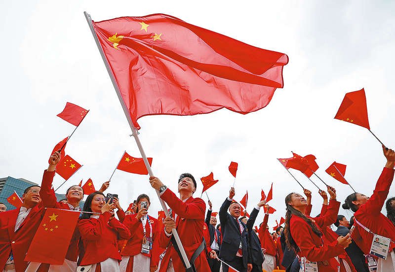 爱国主义是中国人民同心同德、自强不息的精神纽带。将祖国放心中、将责任扛肩上,“祖国至上”“为国争光”的爱国主义信念,流淌在每一位中国健儿的血液中。