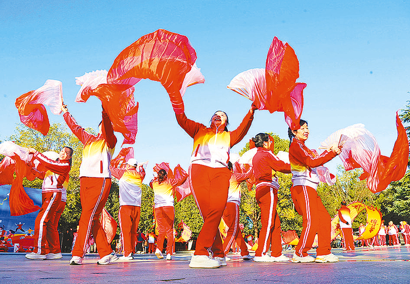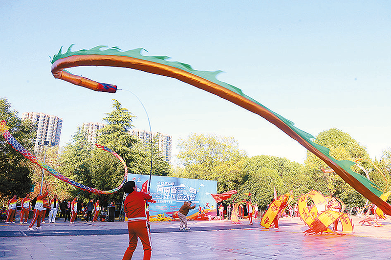 运动会上,市健身鞭协会和橡林社区的健身达人进行了活力四射的展演。彩带龙、健身鞭、广场舞等节目次第上演,充分展现了社区居民热爱健身、注重健康、团结奋进的精神风貌。