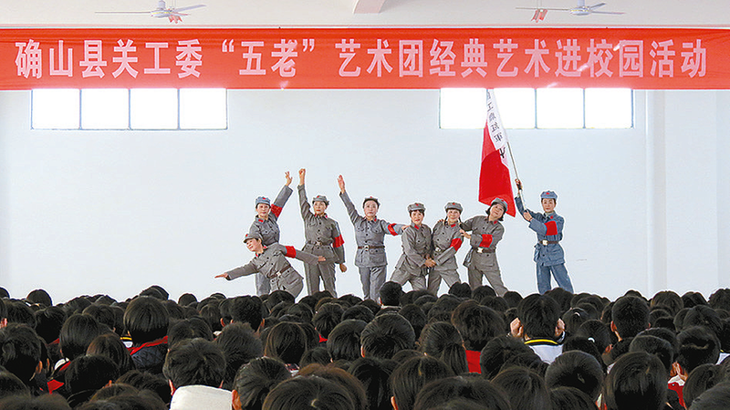 11月26日下午,确山县关工委“五老”艺术团到确山县第二高级中学新校区开展经典艺术进校园活动。