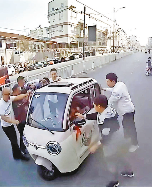 到达现场后,魏刘军发现三轮车门因变形严重无法打开。他一边安抚被困人员情绪,一边徒手尝试扳开车门。此时,车上多名热心乘客自发加入救援行列。众人合力抬起车身,徒手撬开车门缝隙,经过数次尝试,终于成功救出被困人员。因救援及时,两名驾乘人员仅受轻微擦伤。