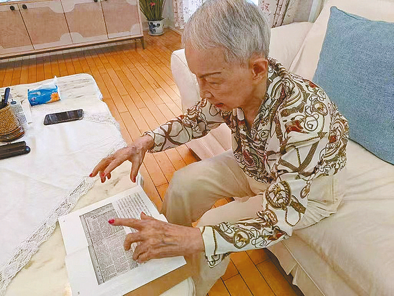 傅莱的遗孀江国珍女士讲述傅莱奔赴 晋察冀边区支援抗战的经历(2025年8月23 日摄)。 新华社记者 黄扬/摄