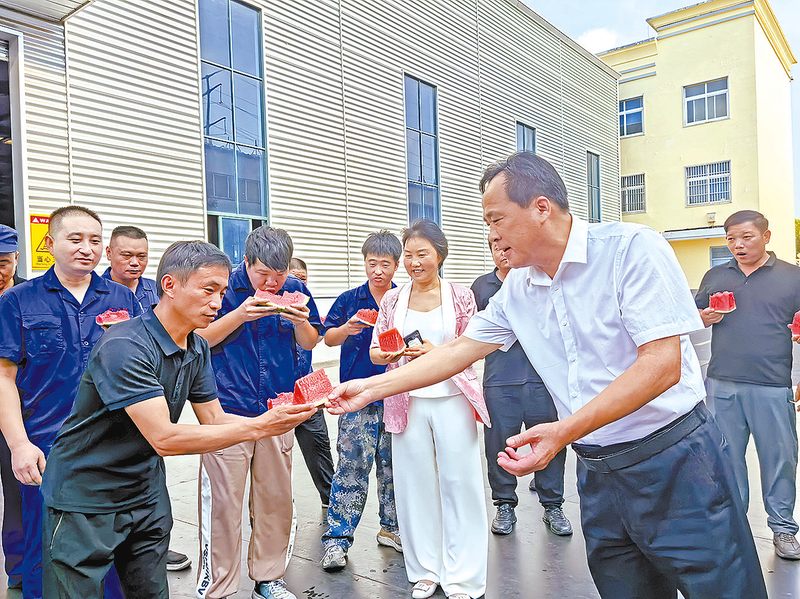 “夏日送清凉”活动中,为员工送上新鲜西瓜。 文/图 全媒体记者房满地