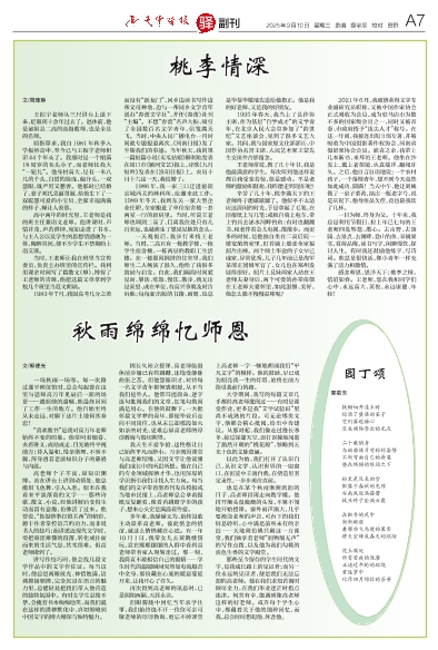 我天生不爱争抢,这性格让自己始终平凡而渺小。万幸既因课堂与高老师结缘,又因文字让他读懂我们成长中的所思所想。他在自己的专业领域挥洒才华,也用深厚的学识指引我们寻找人生方向。每当我们的文字带着墨香刊发在校报或当地市民报上,高老师总会拿着报纸反复翻看,像看着蹒跚学步的孩子,想来心头定是满溢着怜爱。
