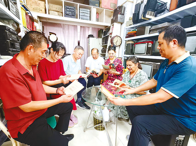 石磊和朋友们一起阅读收来的旧书 文/图 全媒体记者 李贺建