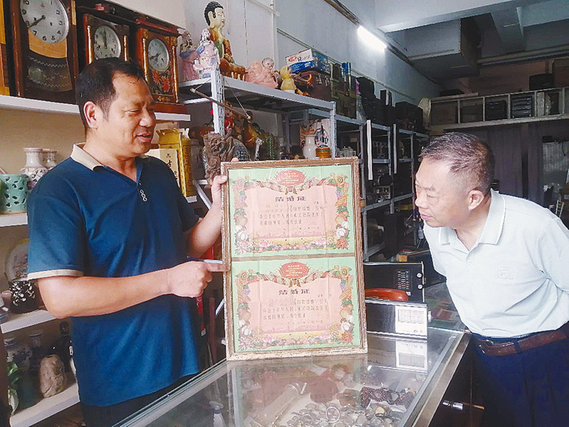 “看到这些老物件,就想起了小时候的时光。”日前,在市区解放大道西段古玩市场,藏友石磊带着一群朋友,一边观赏墙上挂着的各式老物件,一边给他们讲述收集这些老物件的故事。