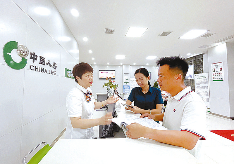 近日,中国人寿驻马店分公司的工作人员向客户耐心讲解保险条款。