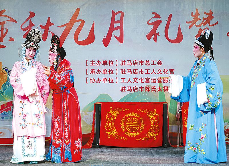 本报讯(文/图 全媒体记者王永良)9月13日晚,由驻马店市总工会主办,驻马店市工人文化宫承办,驻马店市工人文化宫运营服务中心、驻马店市陈氏太极拳研究会协办的“中国梦·劳动美·工会情”2025年驻马店工会职工文化广场活动之“金秋九月礼赞华章”在驻马店市工人文化职工文化广场举行(如图)。由驻马店市均香表演服务有限公司带来的经典豫剧《拷红》,让观众过了一把戏瘾。
