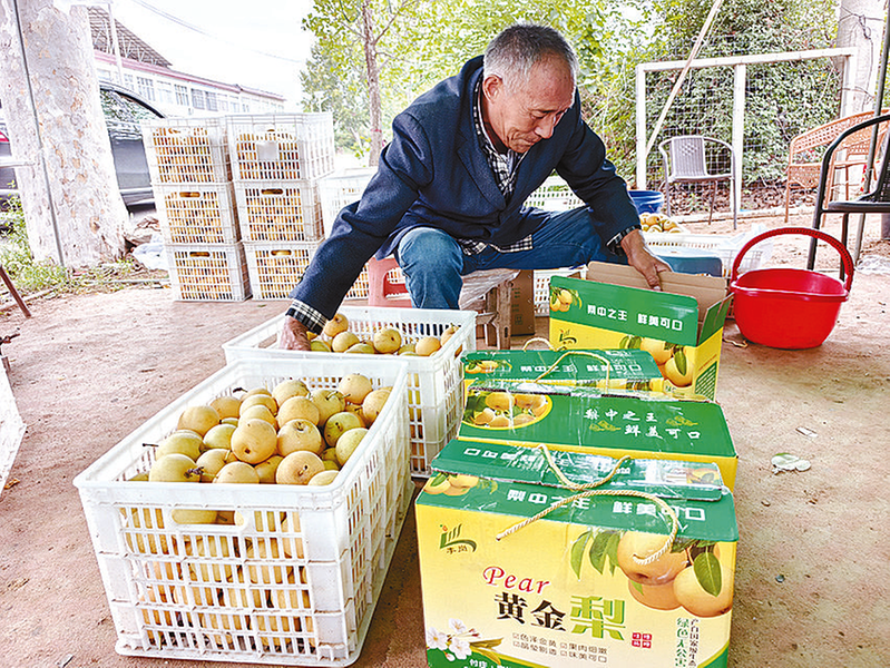 “我家种了26亩黄金梨,果子口感脆嫩、甜度十足,今年算下来仅黄金梨这一个果品至少能收入20万元。”果农李玉中一边忙着采摘,一边笑着算账。