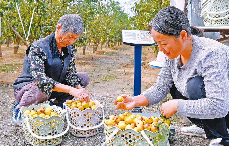 挑拣冬枣 本报讯(文/图 全媒体记者 弓华静)眼下,位于市城乡一体化示范区的天中冬枣园迎来采摘季。园内枣树上挂满了一串串金灿灿的冬枣,在阳光下熠熠生辉,一派丰收的喜人景象。