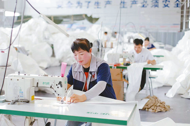 本报讯(文/图 全媒体记者李玉荣 见习记者 余川)9月22日,正阳县先进制造业开发区机械制造产业园内,河南柯迪休闲用品有限公司生产车间一派繁忙景象。缝纫机的针疾速起伏,工人们手法娴熟地理顺布料(如图)。