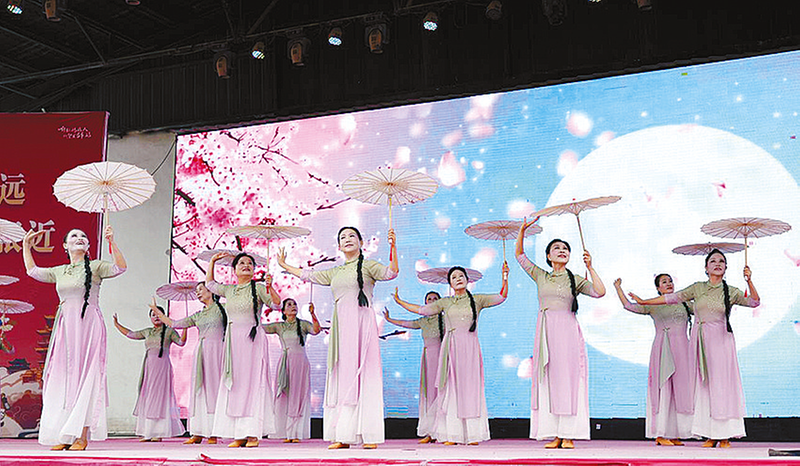 这场以“迎国庆 欢度中秋”为主题的舞蹈盛会,串联起全市舞蹈爱好者的风采与荣光,29部舞蹈作品的舞者以肢体为笔、以情感为墨,在舞台上书写家国情怀,为“双节”将至的天中大地晕染出浓厚的文化氛围。《美丽新农村》以灵动舞步勾勒稻浪翻滚、屋舍俨然的乡村振兴图景,每一个转身都似风吹麦浪般鲜活;《双脚踏上幸福路》用欢快鼓点搭配轻盈跳跃,将日子越过越红火的喜悦揉进每一段节奏;《人间烟火》描摹巷陌里的烟火温情;《红土地》以深沉舞步致敬革命热土……而《我爱你中国》《走向复兴》则以激昂的旋律点燃全场,整齐的队列、饱满的神情,让台下观众不自觉跟着节拍挥舞手臂,掌声与喝彩声如潮水般此起彼伏。