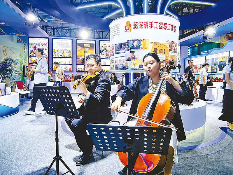 小提琴的弓弦轻轻搭上琴弦,清亮而深情的音符流淌而出——《我和我的祖国》那熟悉的旋律,像一颗投入静湖的石子,瞬间在文博会熙攘的展厅里漾开涟漪。人们纷纷循声聚拢过来,不少观众情不自禁跟着哼唱起来。驻马店文创,用这样一种优雅而深情的方式,完成了实力“圈粉”。
