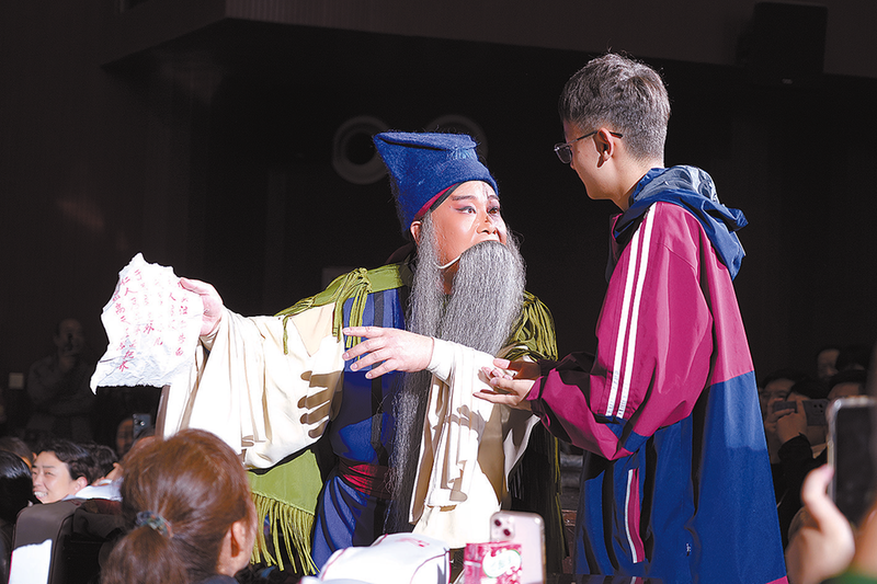 演出巧妙穿插“喷空”艺术,以评书式解说串联剧情,既强化故事脉络,又融入地域幽默特色,契合“题材有热点、剧情有亮点”的创作理念,让传统剧目焕发新活力。高潮段落中,状元郎张继保不认养父母后逃入观众席,被戏迷“当场逮住”,最终“雷劈不孝子”的结局震撼上演,引发全场对“忠孝”主题的深刻共鸣。