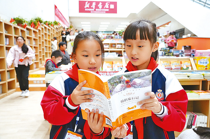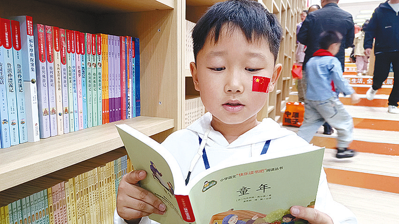 ◀认真阅读 本报讯(文/图 全媒体记者 王永良)9月27日上午,由市文化广电和旅游局、驻马店日报社主办,市图书馆、驻马店青少年宫承办的“百米画卷庆国庆最美童心绘祖国”暨“书香天中·全民阅读”大型公益活动在驻马店青少年宫举行。