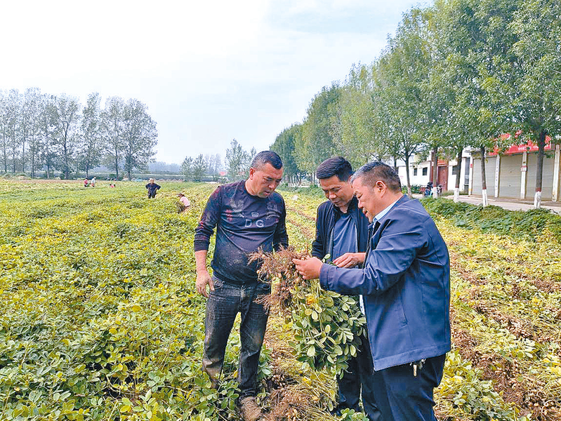 包村干部在观察花生长势 文/图 全媒体记者 陈文科