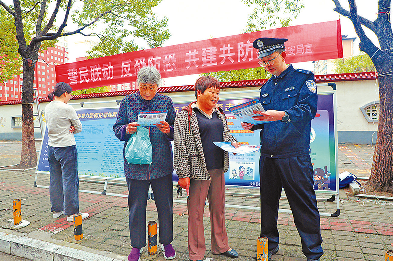 近日,汝南县公安局组织警力走进企业、社区、学校,开展反恐防恐主题宣传活动,普及国家安全教育知识,增强群众反恐防恐意识和能力。(全媒体记者 代廷伟 通讯员 王航天)