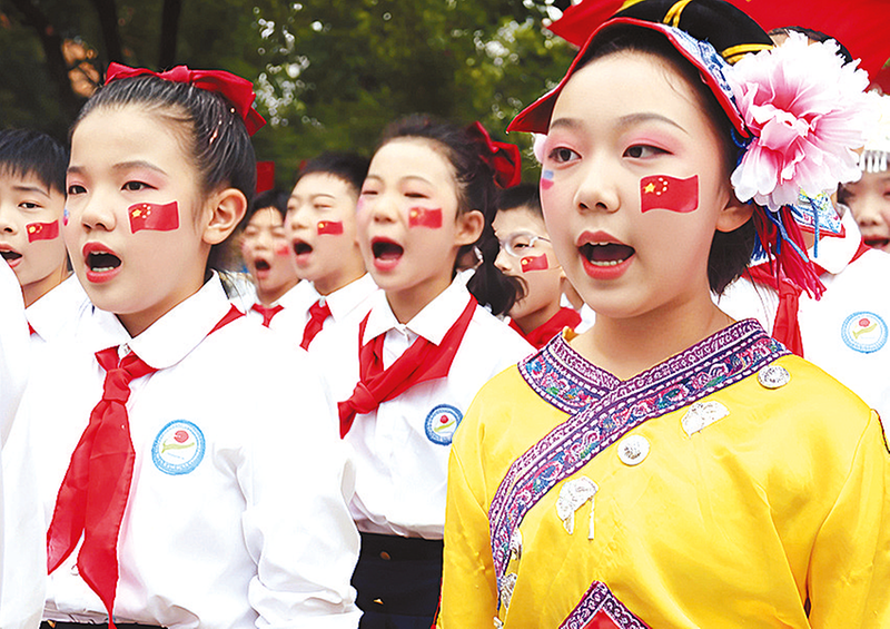本报讯 “五星红旗迎风飘扬,胜利歌声多么响亮……”9月28日,驻马店第二实验小学的操场上彩旗飘扬、歌声嘹亮、掌声雷动,一场以“童心向祖国 欢歌庆华诞”为主题的迎国庆赛歌会在这里举行。同学们用激昂的歌声为祖国母亲送上最真挚的祝福(如图)。
