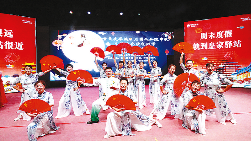 本报讯(文/图 全媒体记者 王永良)10月3日晚,皇家驿站大舞台流光溢彩,由驻马店市公共关系协会主办,灵之悦舞蹈艺术团、玲动舞蹈队、广电之花舞队、红色传承文艺队等联袂献艺的“锣鼓喧天庆华诞 月圆人和迎中秋”文艺展演在此举行(如图)。近千名市民围聚在舞台前,在欢快氛围里共庆“双节”。