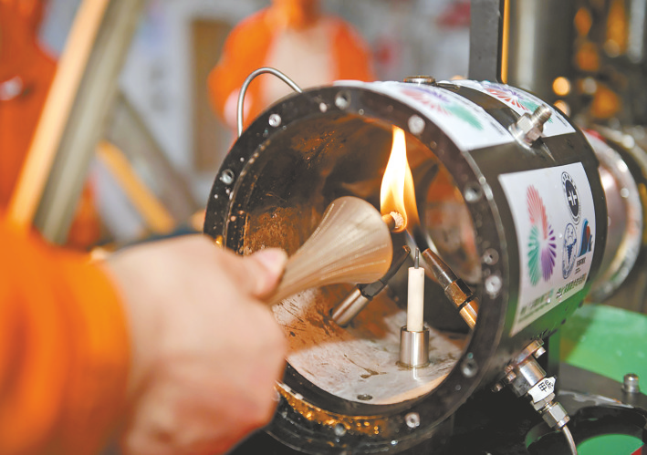 采火装置在海底成功引燃“源火”(9月18日摄)。 新华社发