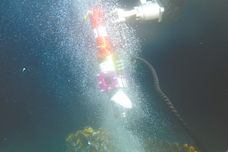 采火装置在海底冷泉喷口采集可燃冰(9月18日摄)。 新华社发