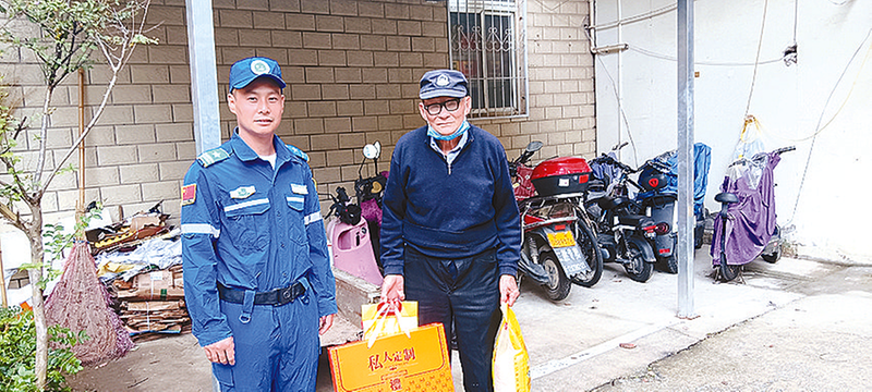 周扬扬一边将慰问品递到老人手中,一边笑着唠起家常,仔细询问老人近期的身体状况和生活需求,叮嘱他们天气转凉要注意添衣保暖,有困难可以及时联系社区工作人员或搜救队队员。老人接过满载心意的物品,脸上满是感动,不停地说着“谢谢”,简单的话语里满是温暖。