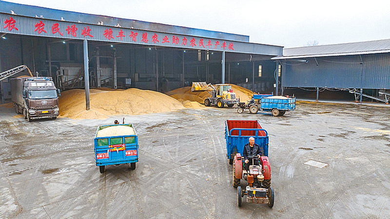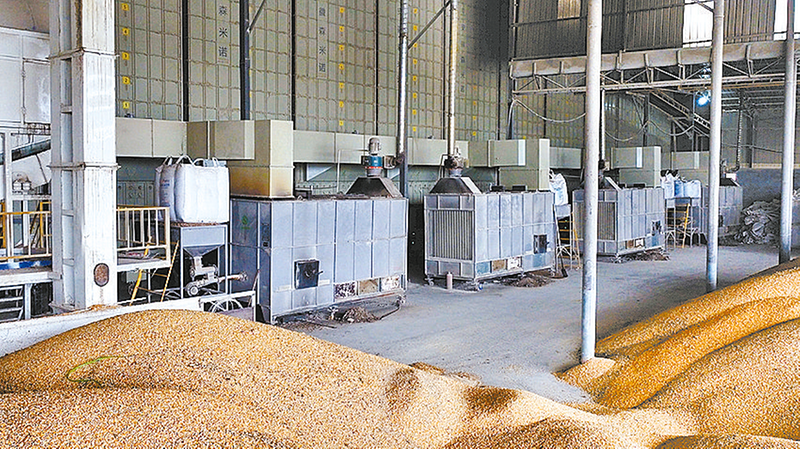 10月10日,西平县杨庄乡操场村的豫粮卓丰农业农民专业合作社内,21台粮食烘干机持续工作,昼夜不停地烘干秋粮。