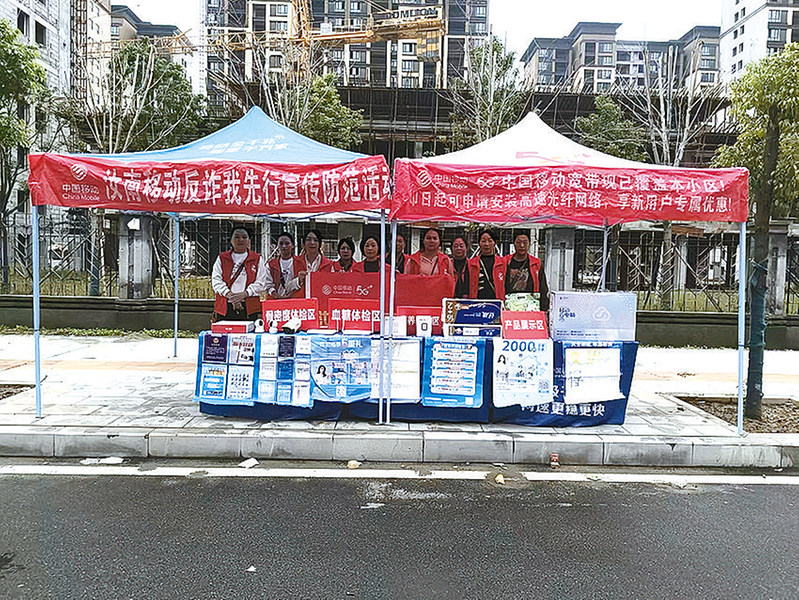 本报讯(文/图 全媒体记者吴勇峰)为提升居民反诈意识,近日,驻马店移动公司在市区一些社区开展了“反诈我先行”宣传活动。