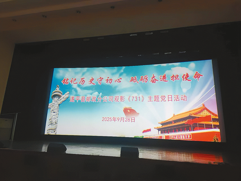 日前,遂平县邮政分公司组织全体党员集中观看爱国主义题材电影《731》。